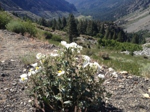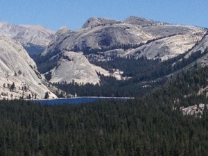 I started the day with the climb up the eastern scarp of the Sierra Nevada to Tioga Pass. It was steep and consistent , all the way from Lee Vining to 9945′. But I would rank it easier than Monitor, which had some sections that got steeper. The weather was beautiful and I stopped frequently for photos (also a good excuse to catch my breathe).at the top, the rangers just waved me through and I descended down to Tuolumne Meadows, where I ate lunch. I talked to some folks doing the John Muir Trail; talked to a Danish couple about good day hikes in the area (sent them to Cathedral Lake); and talked to Harvey from New Jersey who is close to retirement and wants to get into cycle touring.