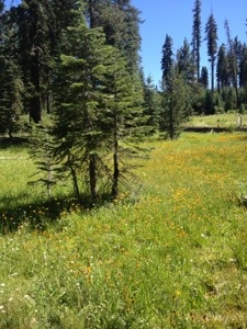 There was a surprising amount of climbing in the high country as I left Tuolomne and headed toward Yosemite Valley. Climbs out of the meadow, after Tenaya Lake, a long climb up to White Wolf, and a shorter on before dropping to Crane Flat. Saw a small fire on the rim just west of Yosemite Creek, which was barely flowing. The descent into the Valley was steep and fun, keeping up with the traffic and staying away from the little stone wall that is all there is between you and the Merced River far below.