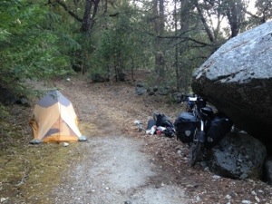 I ended up cycling back down the valley, then up toward Tunnel View, where I dry-camped off the road a ways. Hung my bags from a tree limb to keep my food away from the bears.