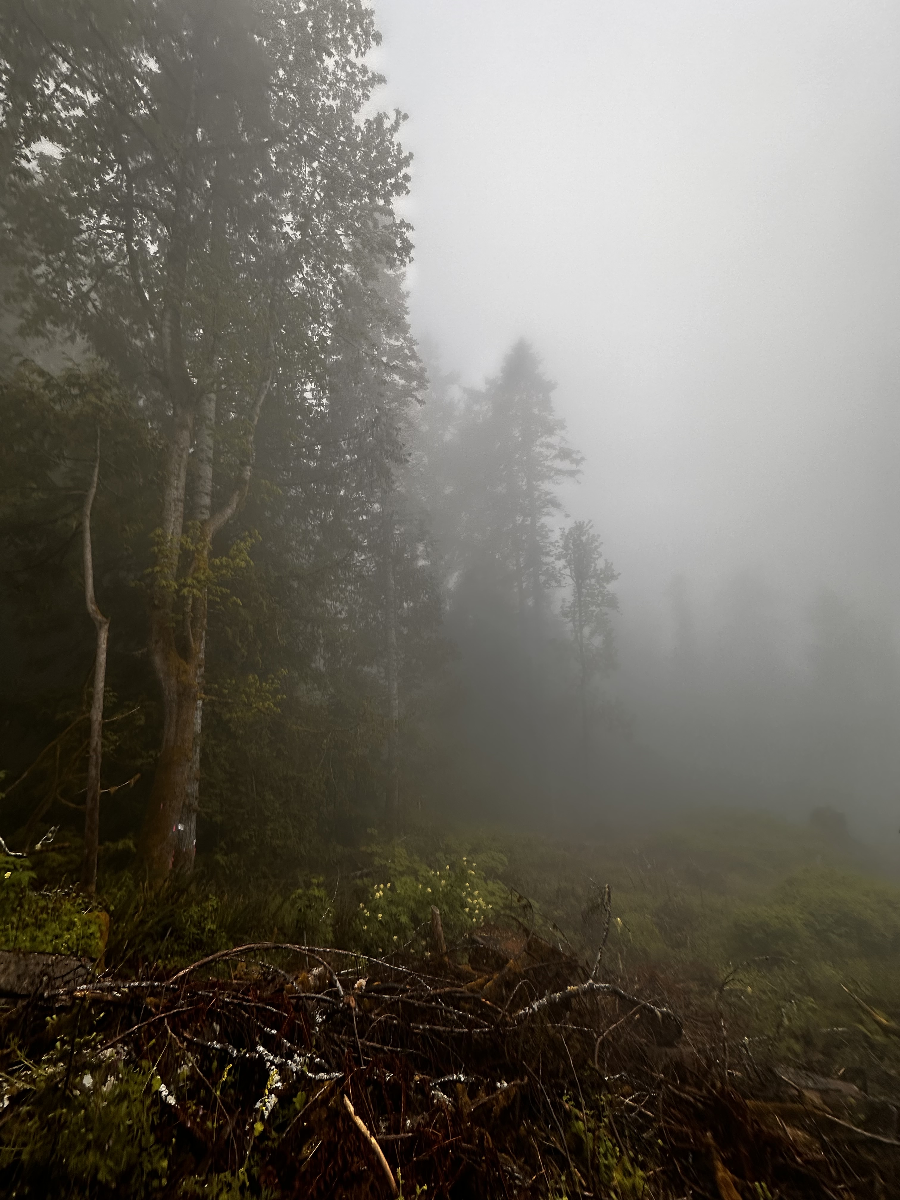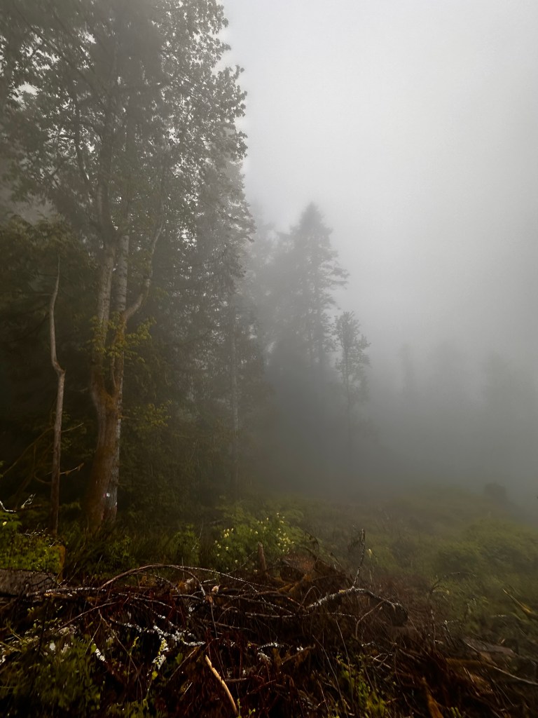 Woke up to a steady rain. Slept ok. It’s always fun trying to keep everything dry as you pack. And of course, the tent’s rainfly is soaked, so you have to stuff it someplace where it won’t get everything else wet.
