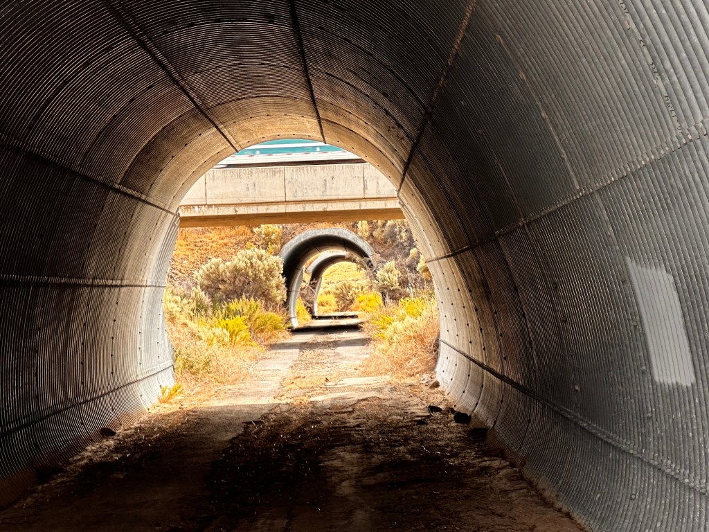 We soon crossed HWY 395 and then started a rough, loose stretch of about 18 miles to Ralston, by far the roughest section of trail so far. In places where the rail tresses have been remove or broken down, the.trail would drop down a side of the grade into the wash or ravine or canyon and then climb back up thee other side. On one of these descents, I ended up in a rut in really soft soil and it swallowed my front tire. I lost control, going about 20th and over I went. Glad the soil was soft, but did sprain my left wrist pretty good. Certain positions on the handlebars bring a lot of pain, but I figured out a couple positions that are tolerable. I also have aero bars that I can rest my elbows on and rest the wrist.