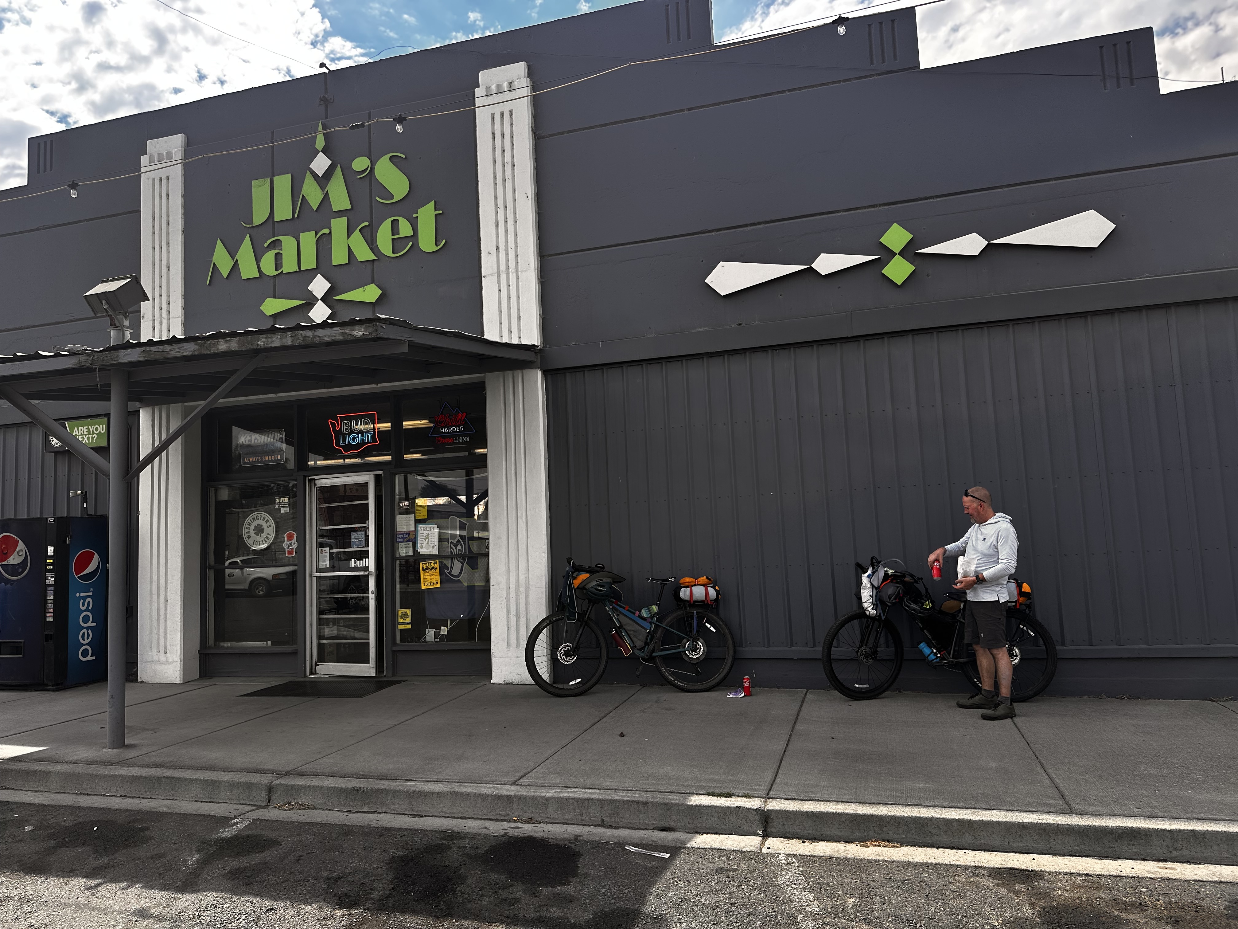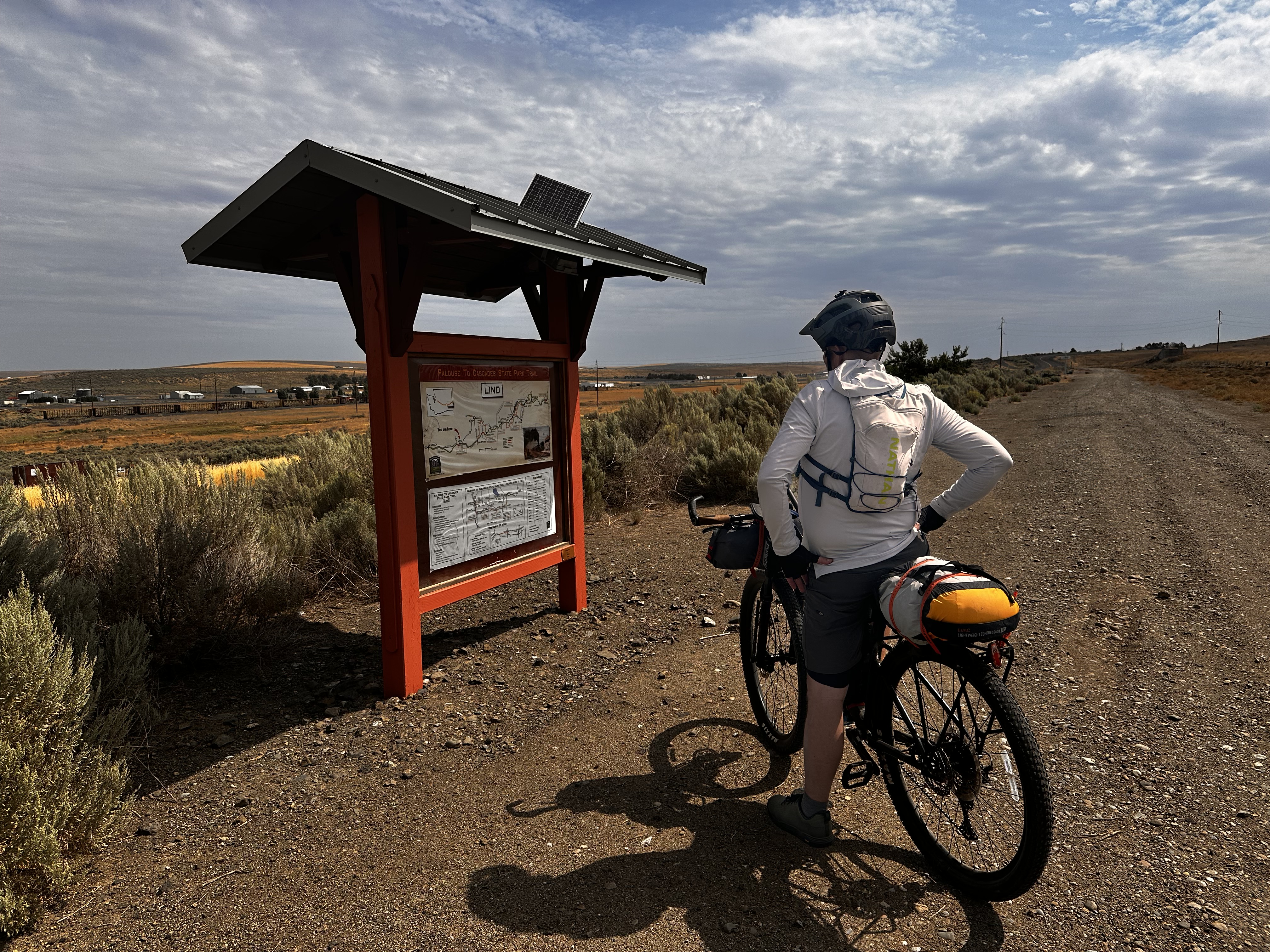 We are back to finish the XWA Mountain Bike Race Across Washington route! Othello was quickly put behind us. Right outside of town we were buzzed by a crop duster- pretty cool. We traveled on gravel roads through fields to Malden, then caught the Palouse to Cascades Rail Trail. The terrain wasn’t too bad, gravel that was fairly packed so we could keep a good pace. We pedaled into Lind and stopped at Jim’s Market for.bite to eat and take a break.