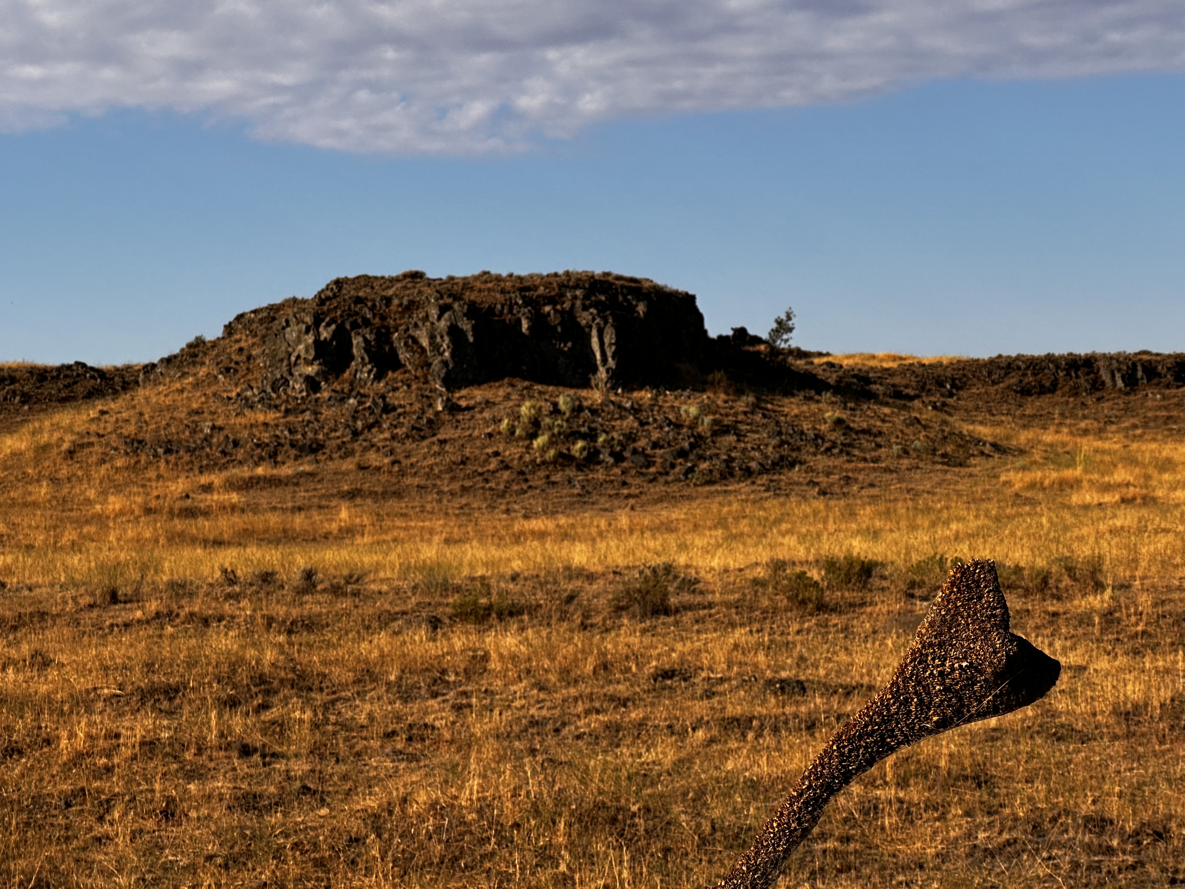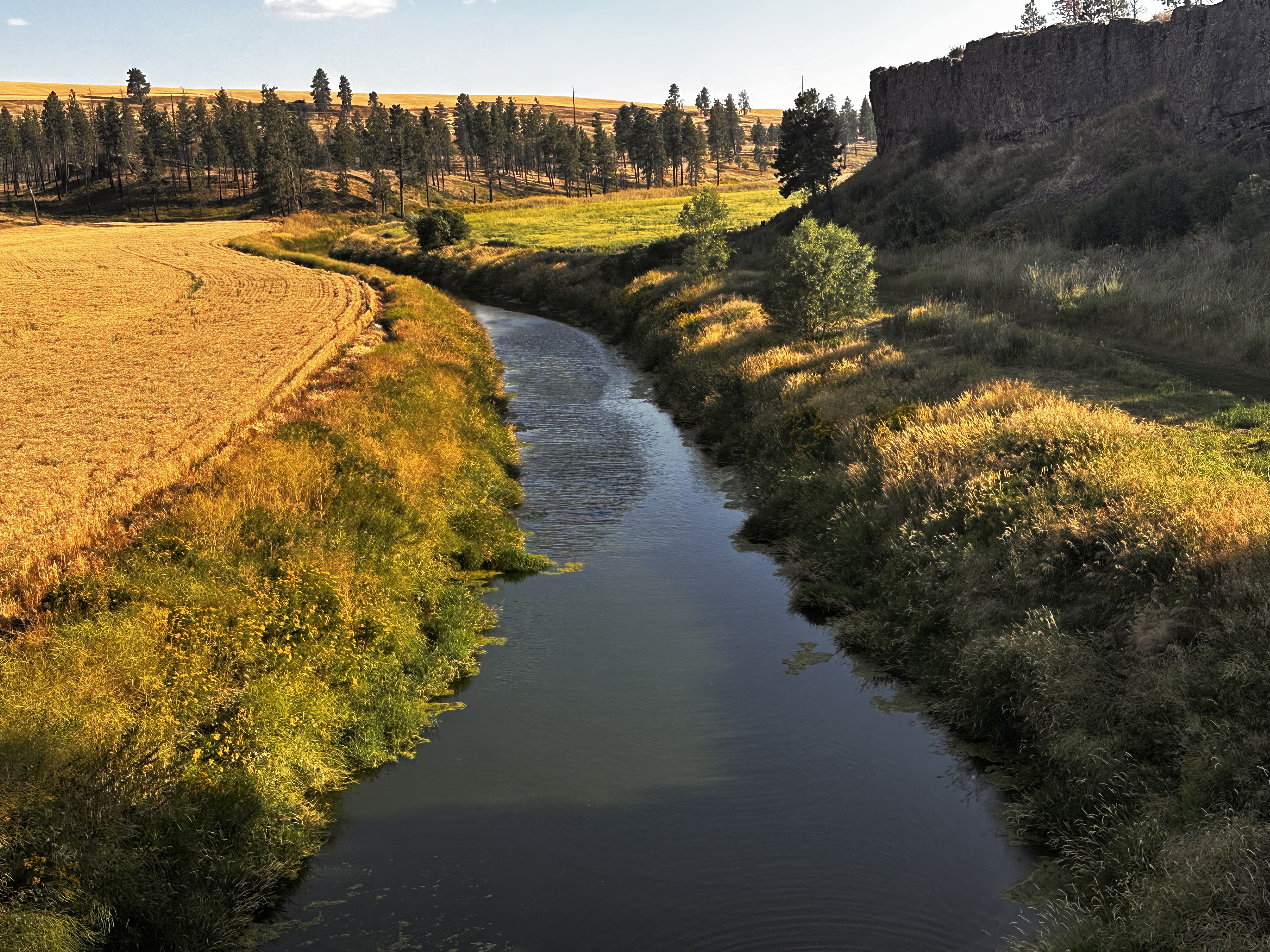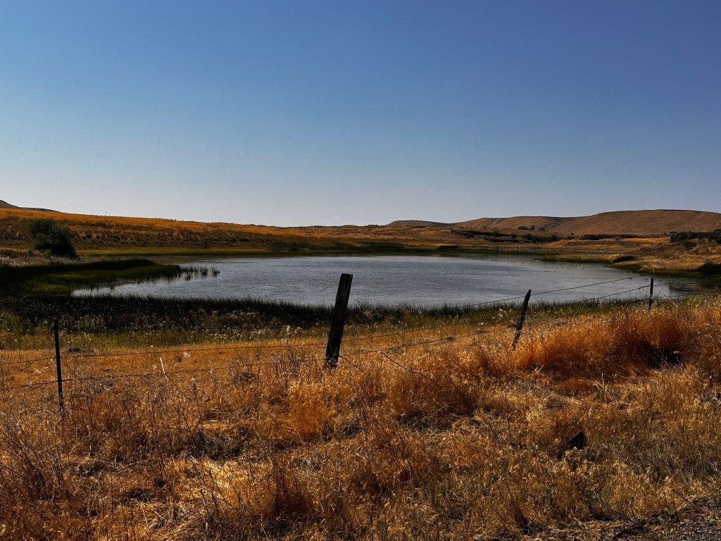 We left Ritzville about 7am after a Starbucks coffee and a big breakfast. Pedaling into the sun, we headed out on gravel farm roads through the rolling wheat fields. We turned toward the south east to pick up the Palouse to Cascades Trail again.