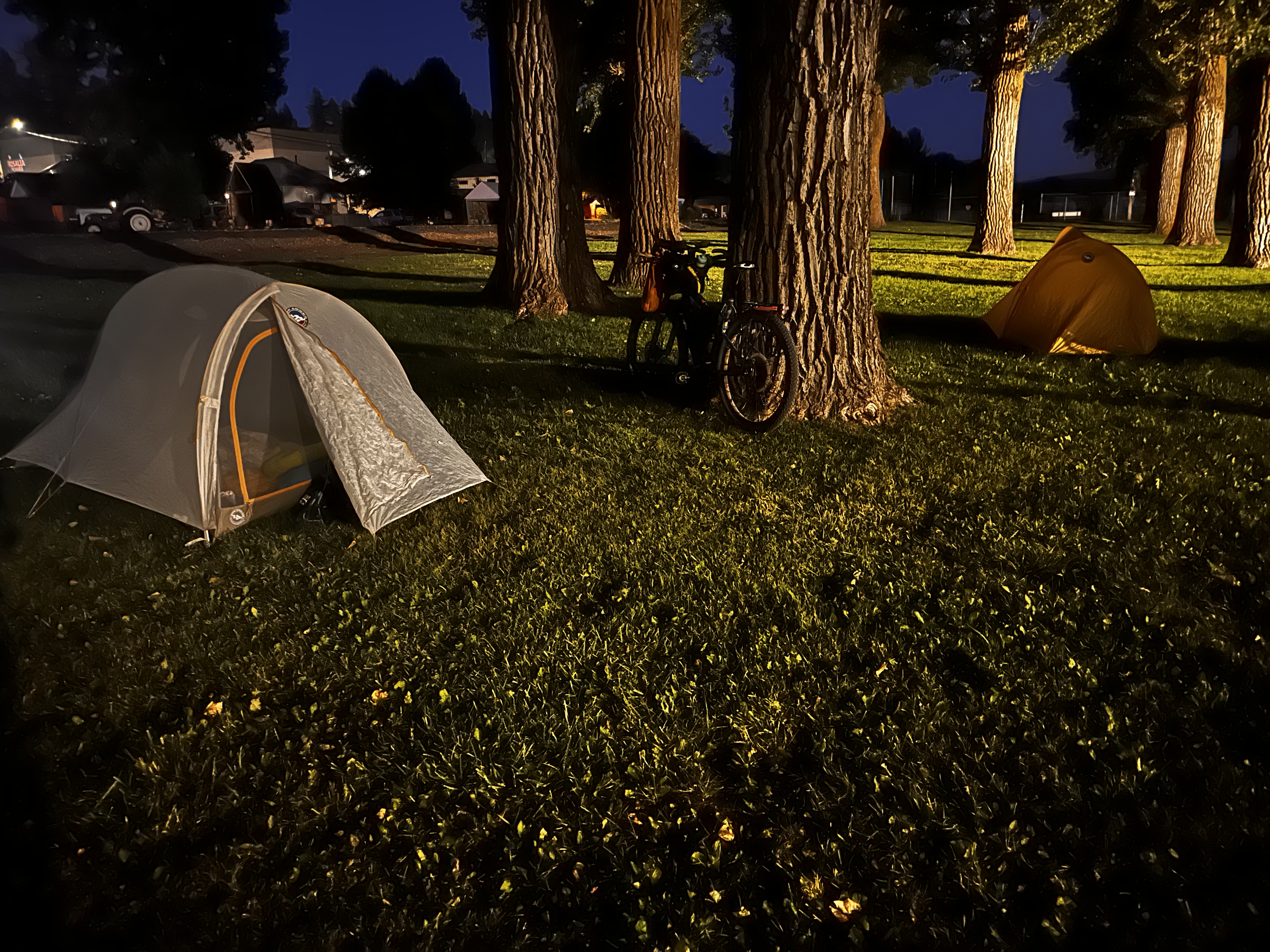 Then we jumped back on the Palouse to Cascades Rail trail, which goes through town and slogged the final 10 miles or so to Rosalia, our destination for the night. We had dinner at the local pizza joint, a great time with the owner and a group of locals. Then got to the city park, where they allow camping, about 8pm.